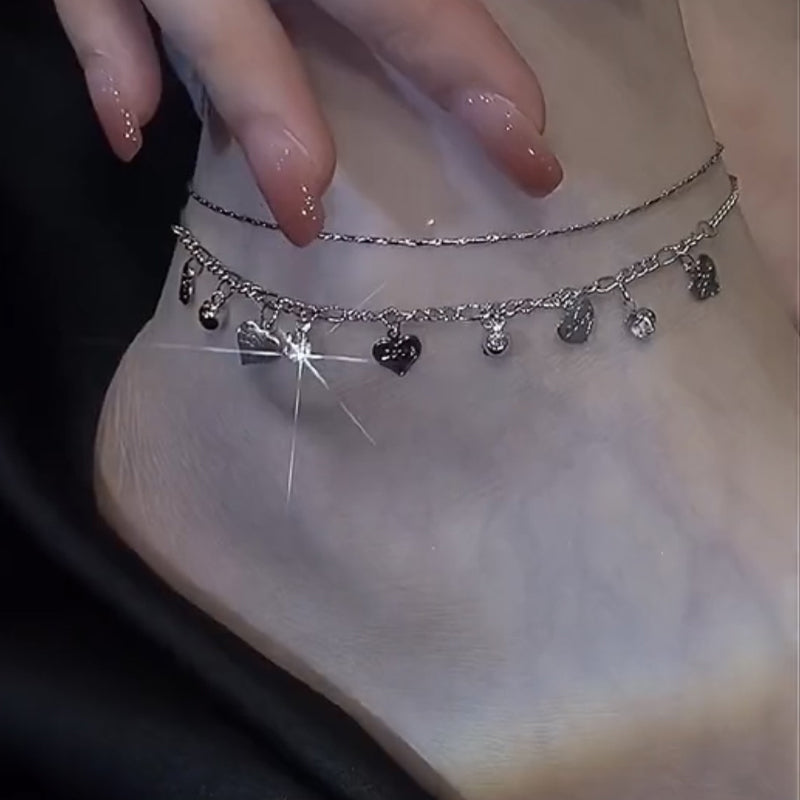 LumiHeart™ | Herz-Fußkettchen mit doppelter Schicht Strasssteinchen