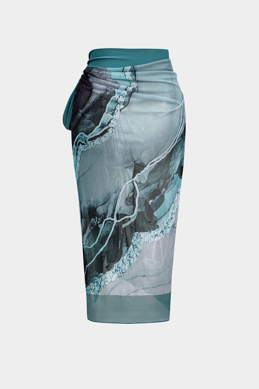 Angela | Einteiler mit kunstvollem Muster und passendem Sarong für einen eleganten Beach-Look