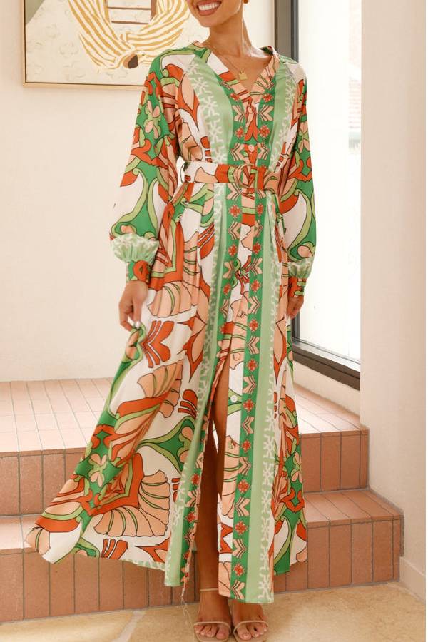 Solmira™ | Herbst Maxi Kleid Orange/Grün