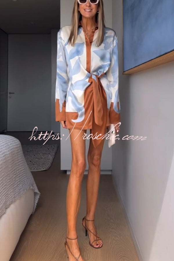 Floravida™ | Lake Days Satin Colorblock Print Hemdkleid